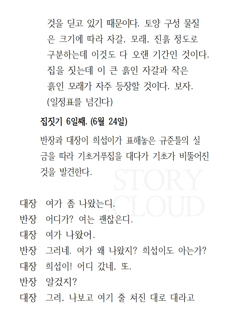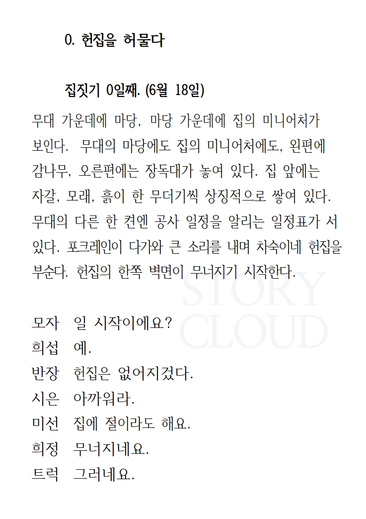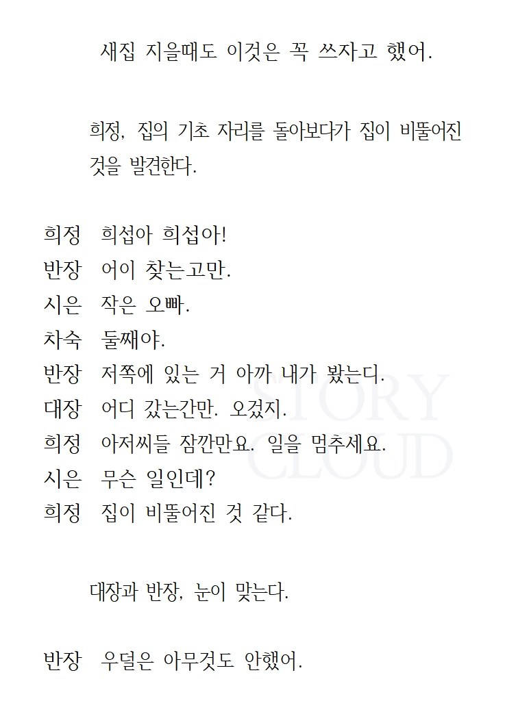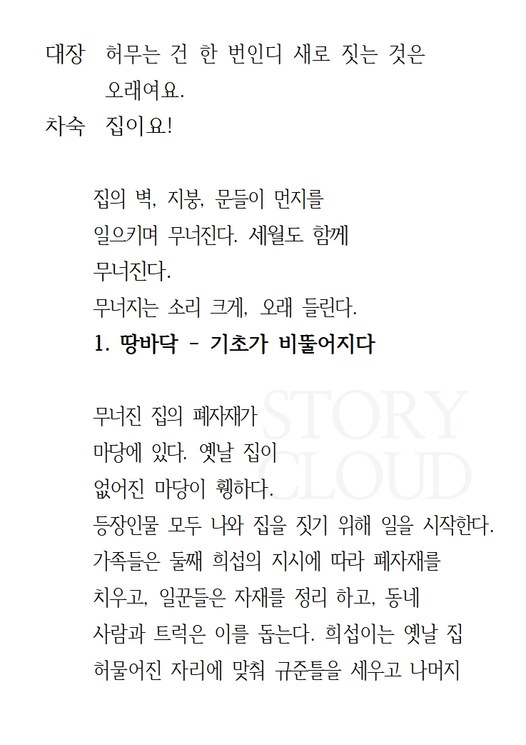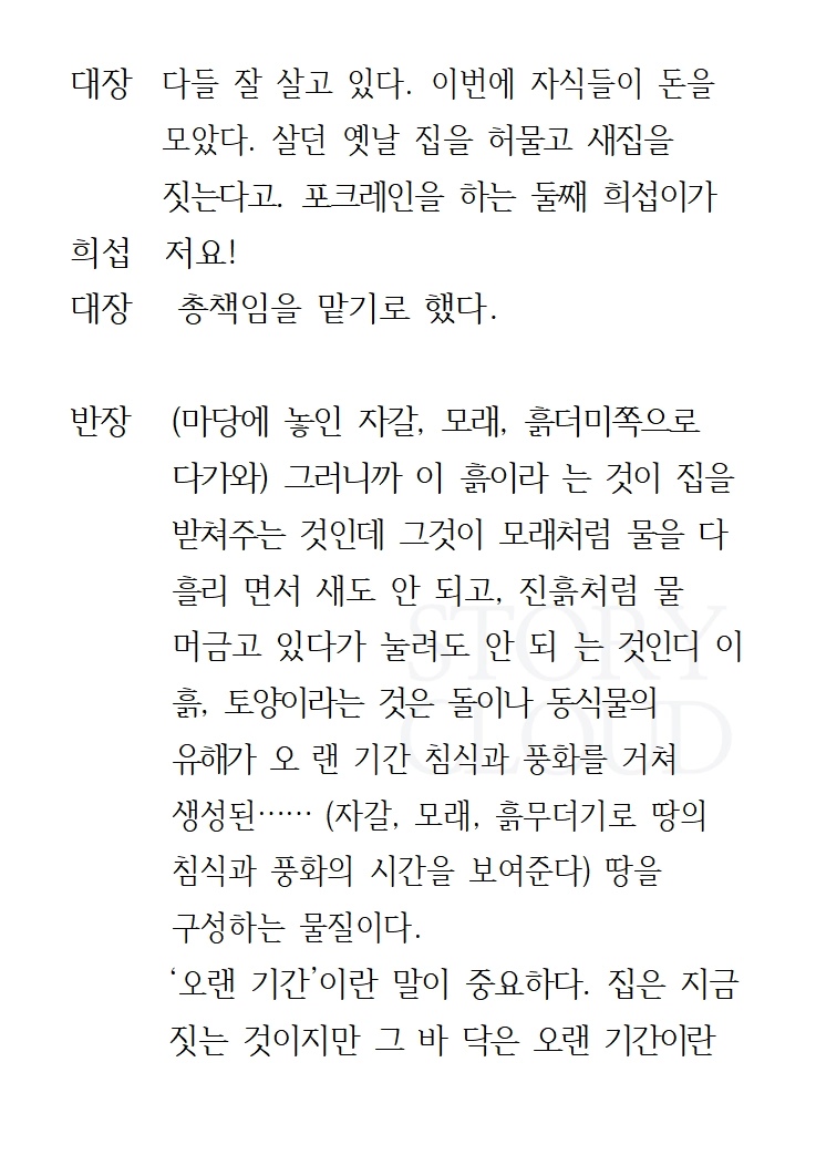 집 - 일꾼 / 대장(50대 남) / 반장(60대 남) / 모자(20대 남)