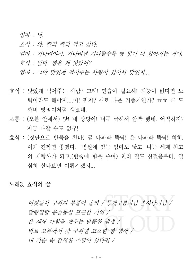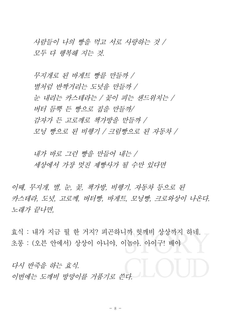 위와 같은 목적이 아니시라면 스토리클라우드 사이트 '스크립트' 카테고리에서 PDF파일을 구매하시거나 대본 미리보기를 통해 작품의 내용을 파악해보시는 것을 추천드립니다.