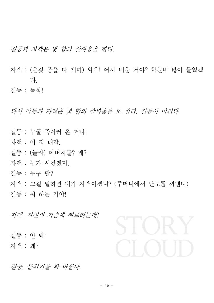 위와 같은 목적이 아니시라면 스토리클라우드 사이트 '스크립트' 카테고리에서 PDF파일을 구매하시거나 대본 미리보기를 통해 작품의 내용을 파악해보시는 것을 추천드립니다.