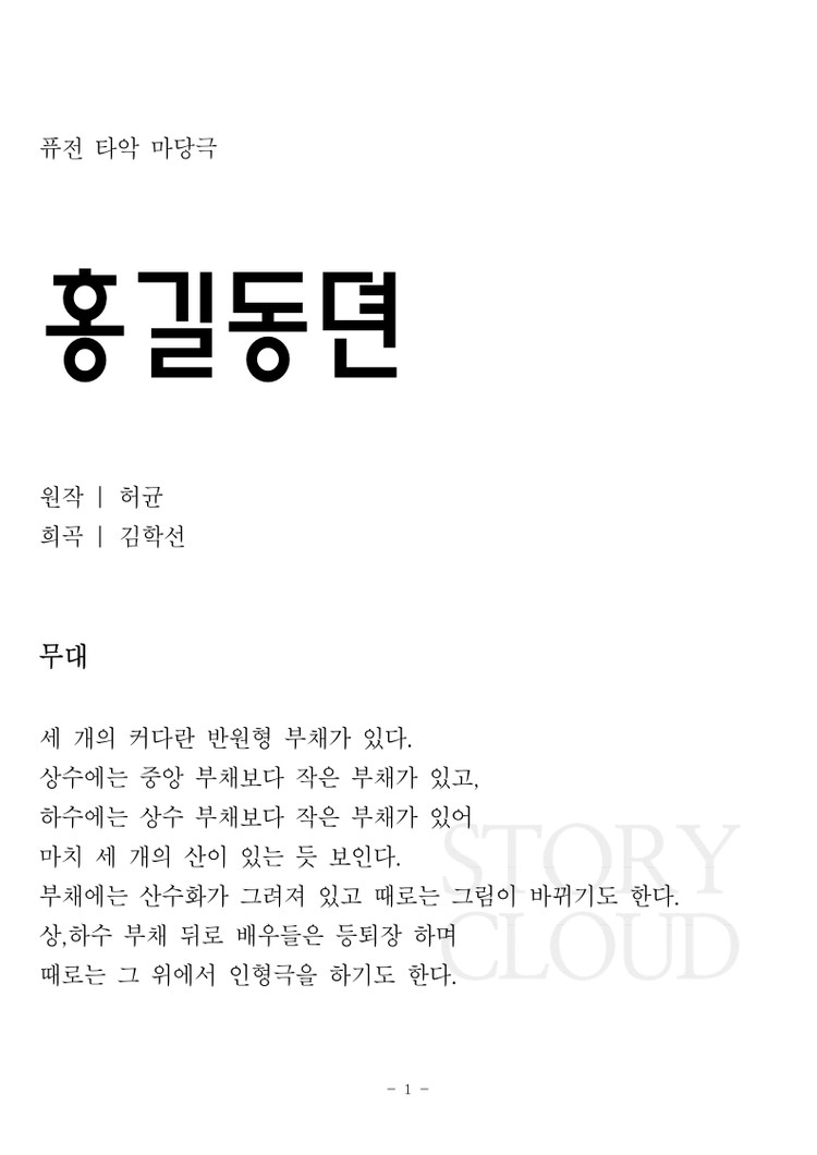 - 공연 대본 혹은 공연을 위한 수정본의 개인 소장은 가능하나, 인터넷 게시 혹은 재판매는 금지이며 발견 시, 법적 조치를 취합니다.
