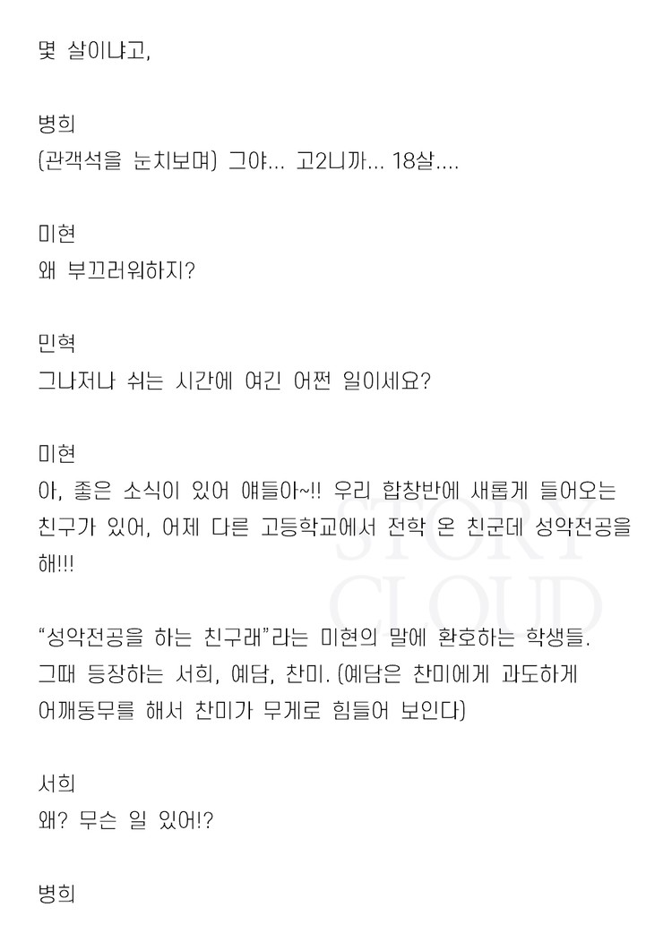 이미 그 합창부에서 학교폭력을 당하고 있는 재웅이와 방관하는 친구들...