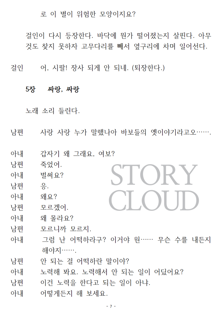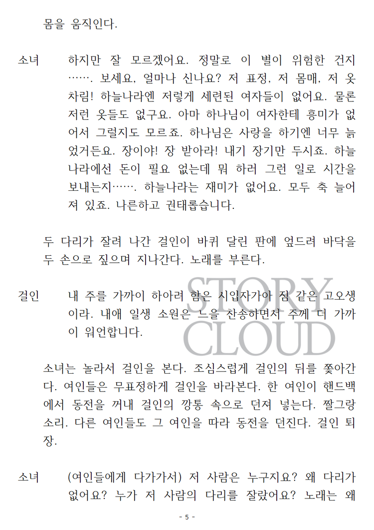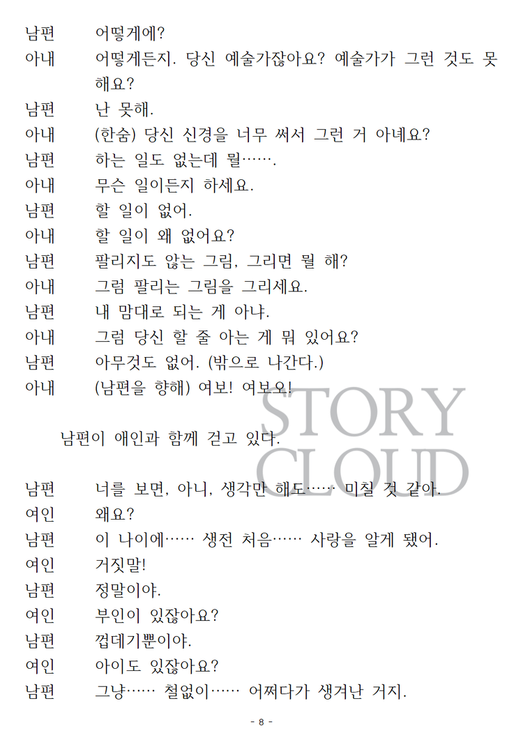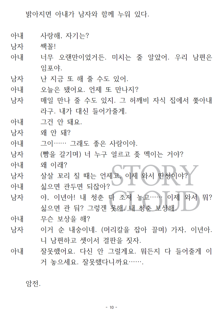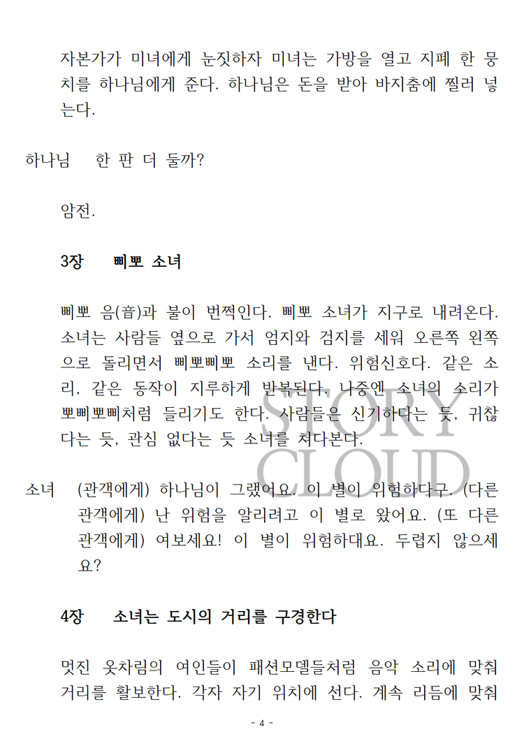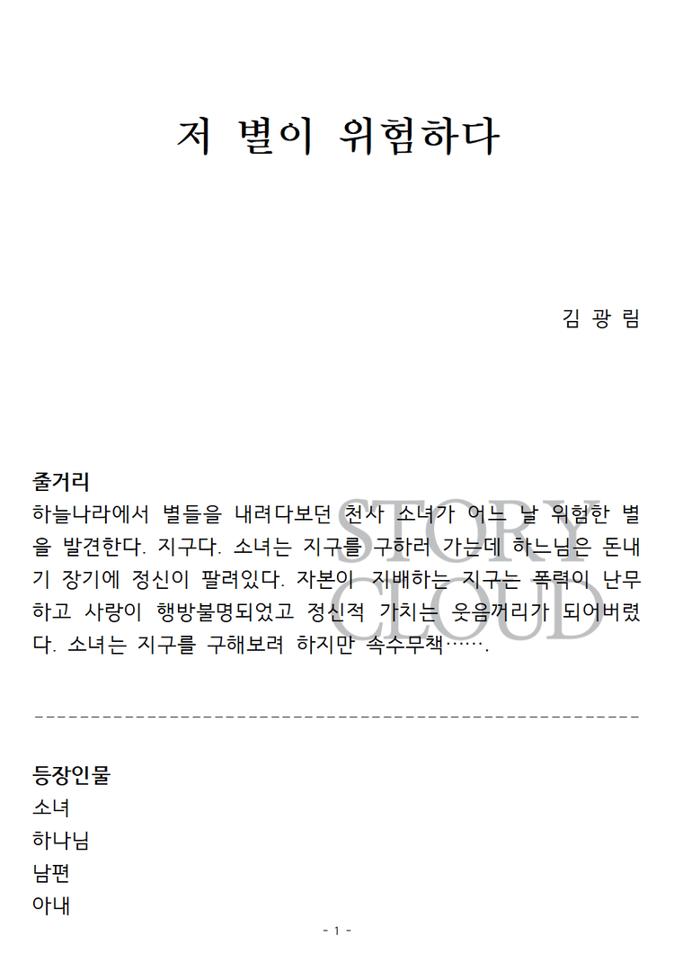 ⚠️ 공연(상연) 목적이 아닌 경우, 본 사용권 구매는 권장드리지 않습니다. 작품 내용 확인은 ‘스크립트’ 카테고리에서 PDF 구매 또는 미리보기를 이용해주시기 바랍니다. 또한, 대본 다운로드 후 구매를 취소하실 경우, 구매 금액의 10% 차감 후 환불이 진행됩니다.