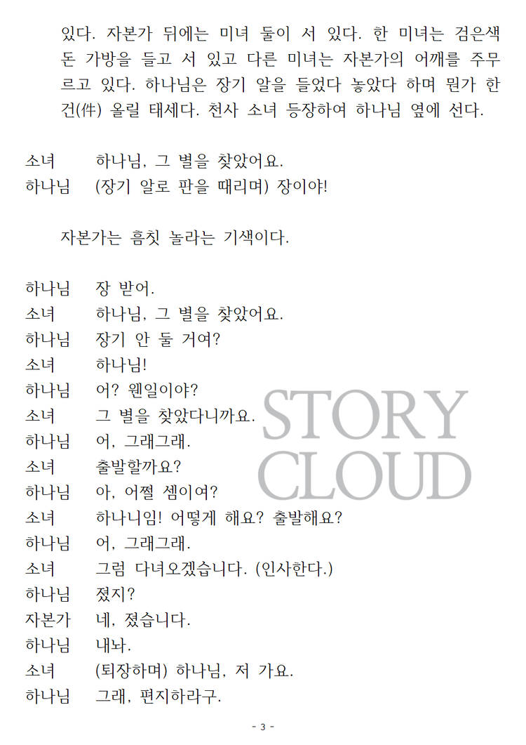 지구 다. 소녀는 지구를 구하러 가는데 하느님은 돈내기 장기에 정신이 팔려있다.