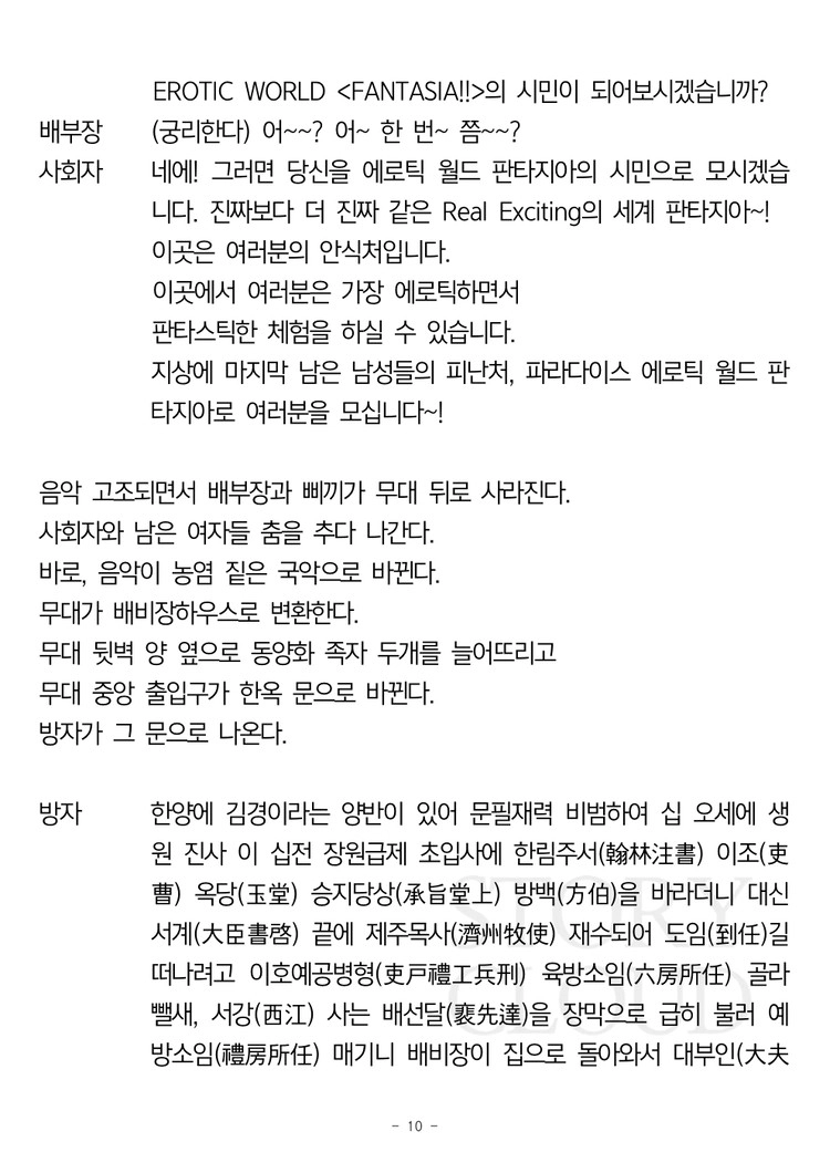 * 이 작품은 2002년 공연한 극단 연우무대의 "웰컴투 배비장하우스"의 2023년 버전입니다