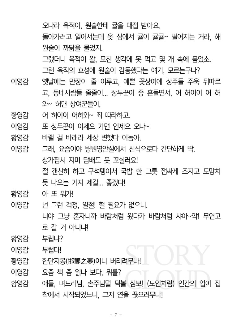 그러나 마음 만큼 입은 떨어지지 않고 연적이자 친구인 성영감은 자꾸 눈에 거슬린다.