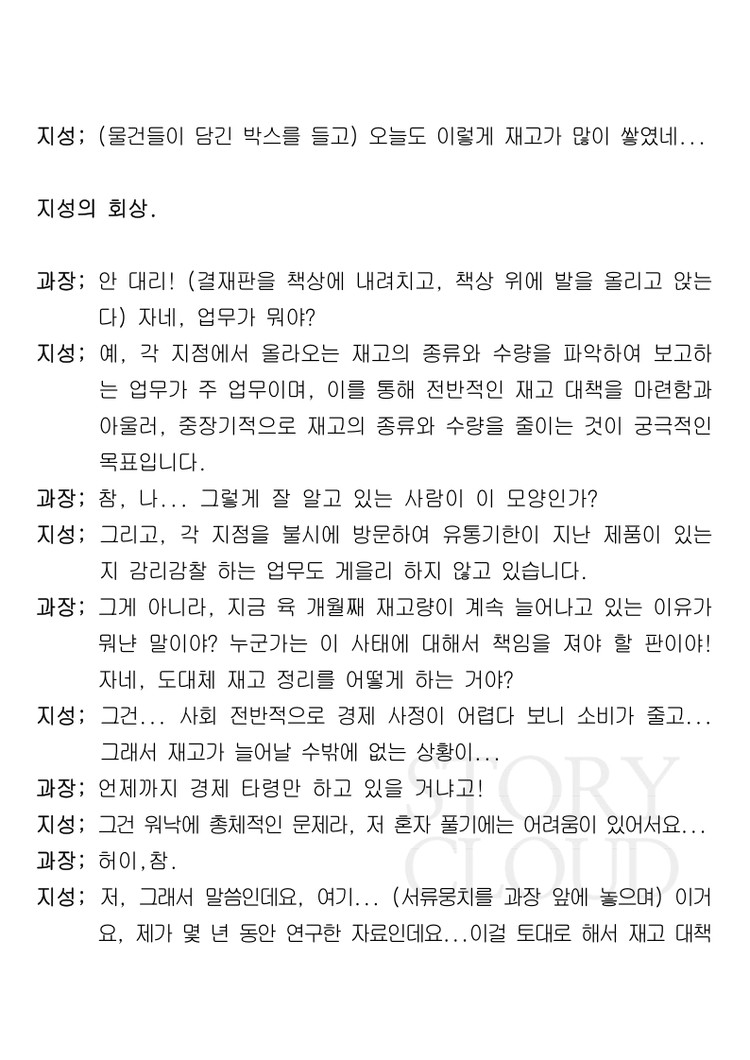 재고 초과로 인해 윗사람으로부터 문책을 당하는 지성.