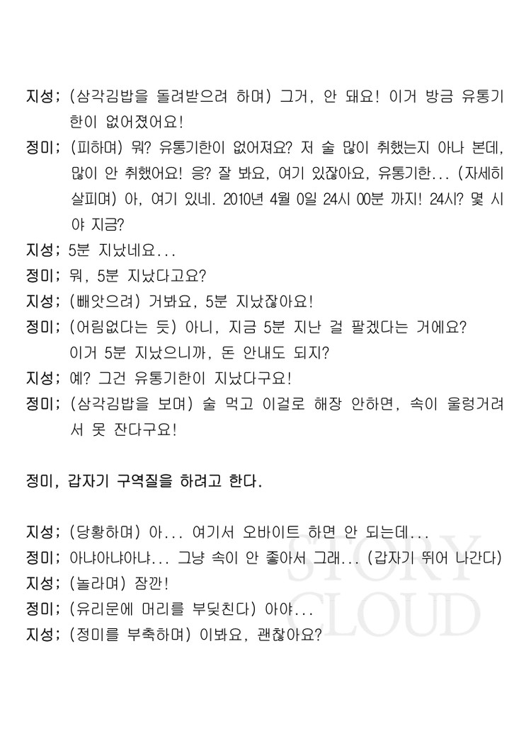 정미는 약국으로 달려가서 반창고를 산후, 편의점으로 달려간다. 그러나 편의점엔 지성이 없다.