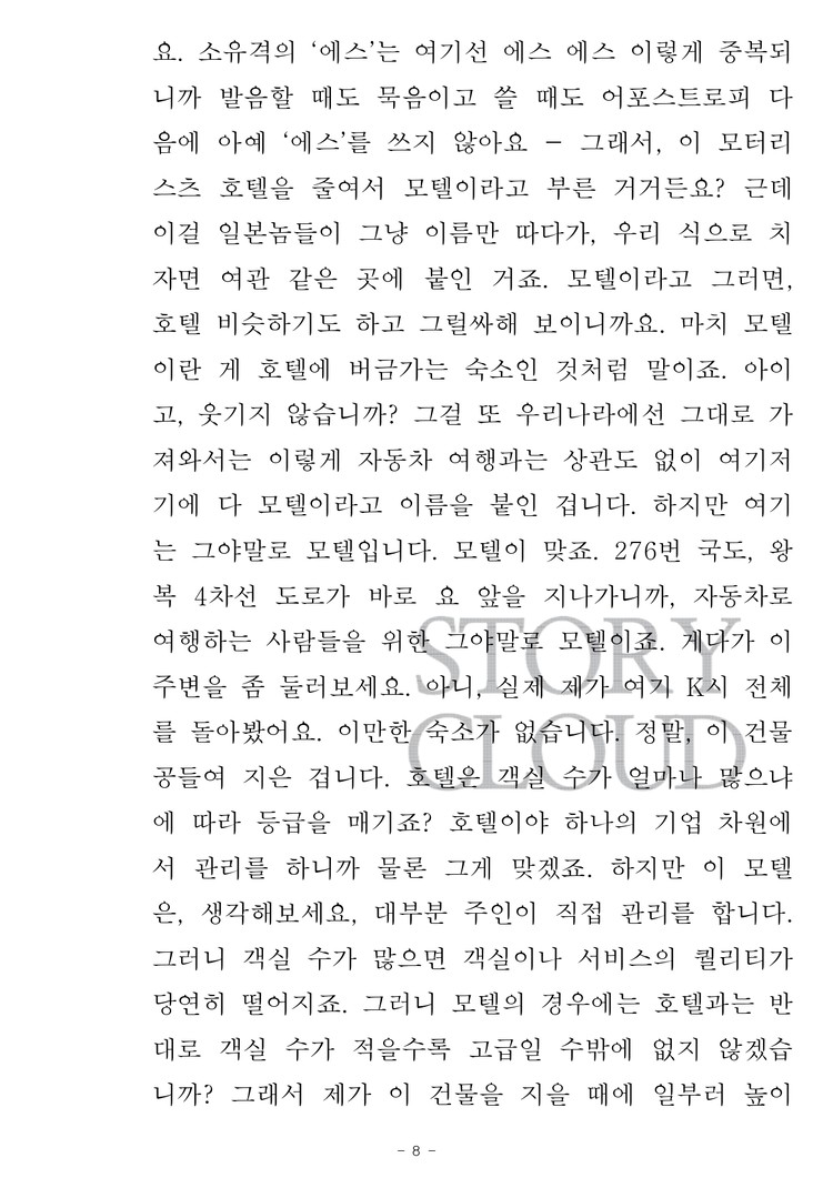 그렇기에 요즘 세상에 그다지 유난 떨 것도 없는 모텔이라는 공간도 미정에게는 견딜 수 없는 부끄러움이 된다.