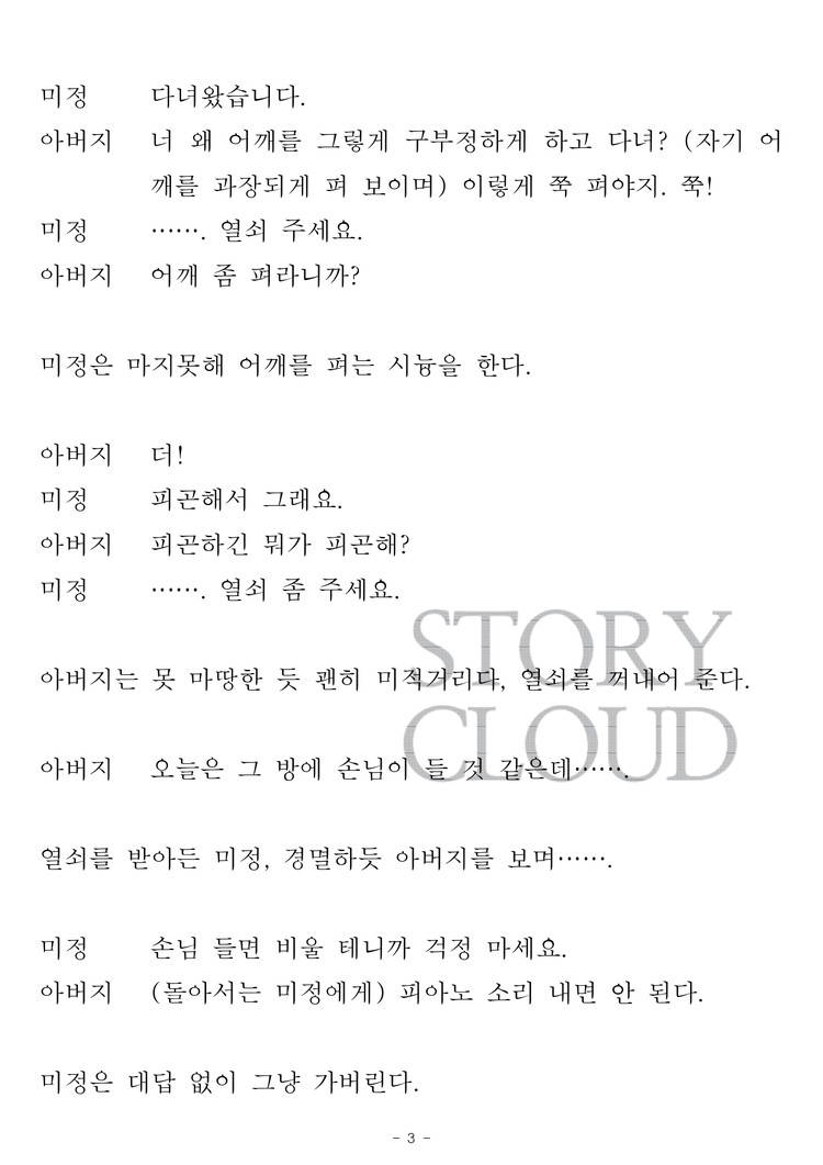 그 부끄러운 공간에 피아노가 놓여 있다는 것이 바로 미정의 비극을 상징한다. 이미 추해져 버린 자신의 삶과, 그래도 포기할 수 없는 아름다움이 동시에 서로 뒤섞여 있기 때문이다.