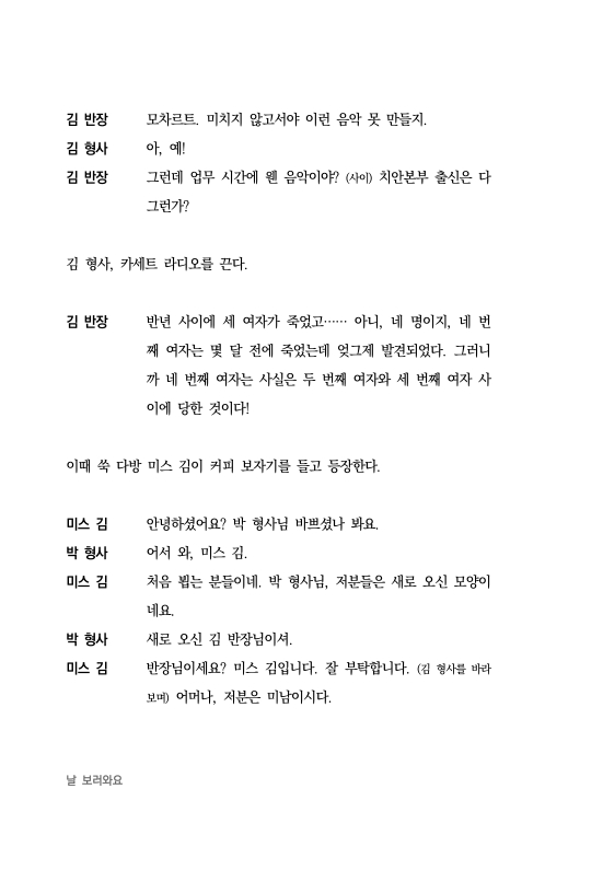 - 연출가에게는 구조적으로 치밀한 무대 텍스트이며