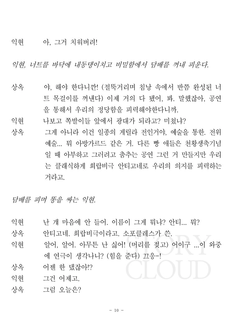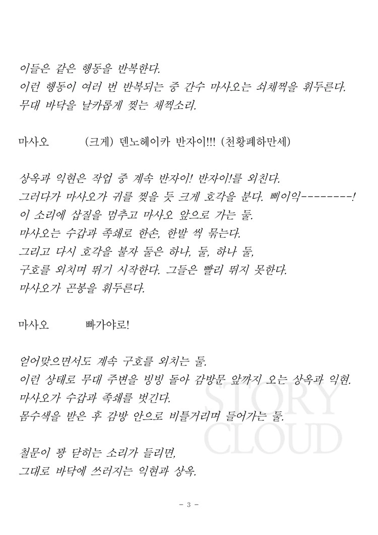 - 대본을 공연하고자 할 경우, 사용권 중개 카테고리에서 공연 사용권 구매 부탁합니다